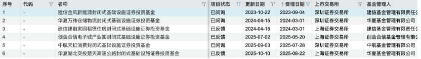 金风科技和电子城的项目被终止,并不意味着只有这两单处境尴尬。按照不完全统计,目前仍处于交易所审核阶段、且在相当长时间内没有公开进展的项目,还包括建信建融家园租赁住房REIT、华夏万纬仓储物流REIT等。其中,华夏万纬仓储物流REIT在2024年3月申报,4月获得审核意见,此后一直未披露新的节点,而关联方的经营状况也引发市场对项目合规性的更多讨论。