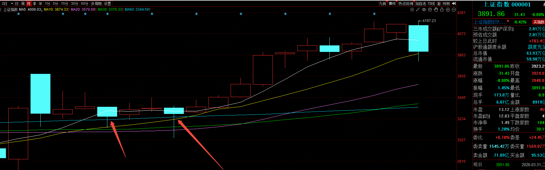 然后我就复盘了924行情以来,上证指数月线没有跌破过10月均线,瞬间觉得好像还真是这么回事。希望四月份的行情对A股股民好一点,让我们赚点钱吧,毕竟股民赚了钱才有动力拉动消费,从而拉动经济。