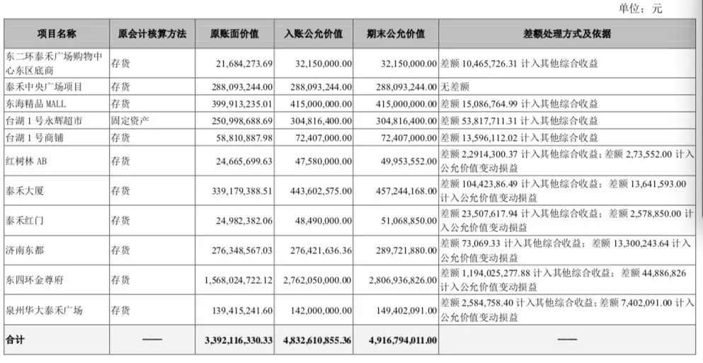 资料显示,2018年,泰禾将多项物业由存货或固定资产转为投资性房地产,这部分存货或固定资产的原账面总价值为33.92亿元,转为投资性房地产之后的入账公允价值则变为48.33亿元,一进一出之间,泰禾增加了净资产14.41亿元。
