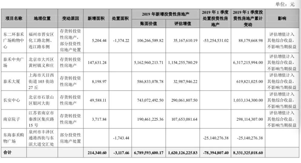 值得一提的是,这样的操作在泰禾一季报中再一次被发挥得淋漓尽致。一季报显示,泰禾投资性房地产259.88亿元,较 2018 年年末增长47%,变动原因为“新增加的投资性房地产”。这一点同样引发了深交所的问询。