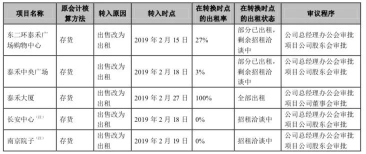 比如东二环泰禾广场购物中心项目,2015年12月开始陆续竣工转入投资性房地产核算,部分2016年转入的投资性房地产于2018年1月11日开始出售,截至年底其出售面积占该项目总可租赁面积的7.44%,出租率为85%。