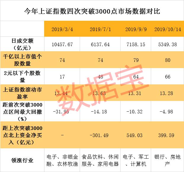 本轮上证指数再度突破3000点,市场出现了哪些变化呢?证券时报.数据宝统计发现,与前三次相比有以下变化: