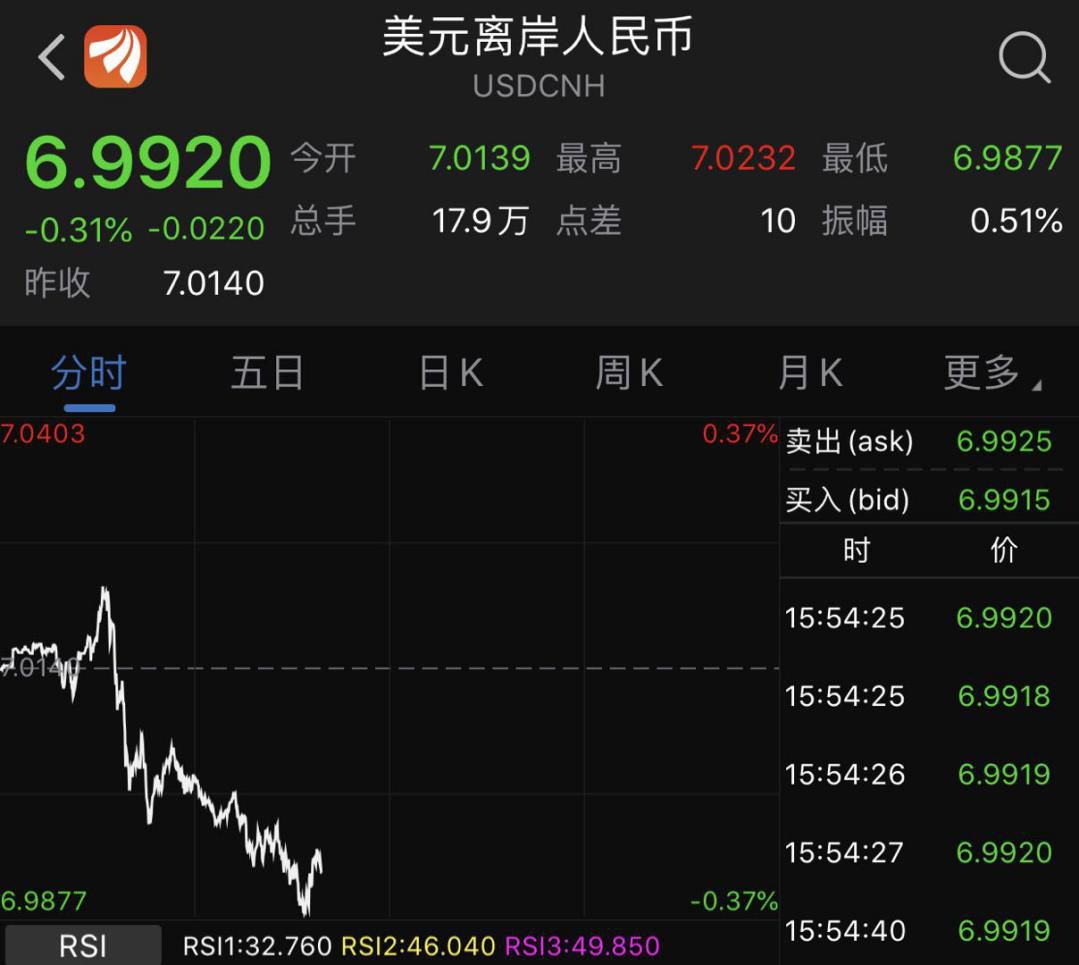 第三,外围市场的氛围也非常好。人民币升值势头强劲。
