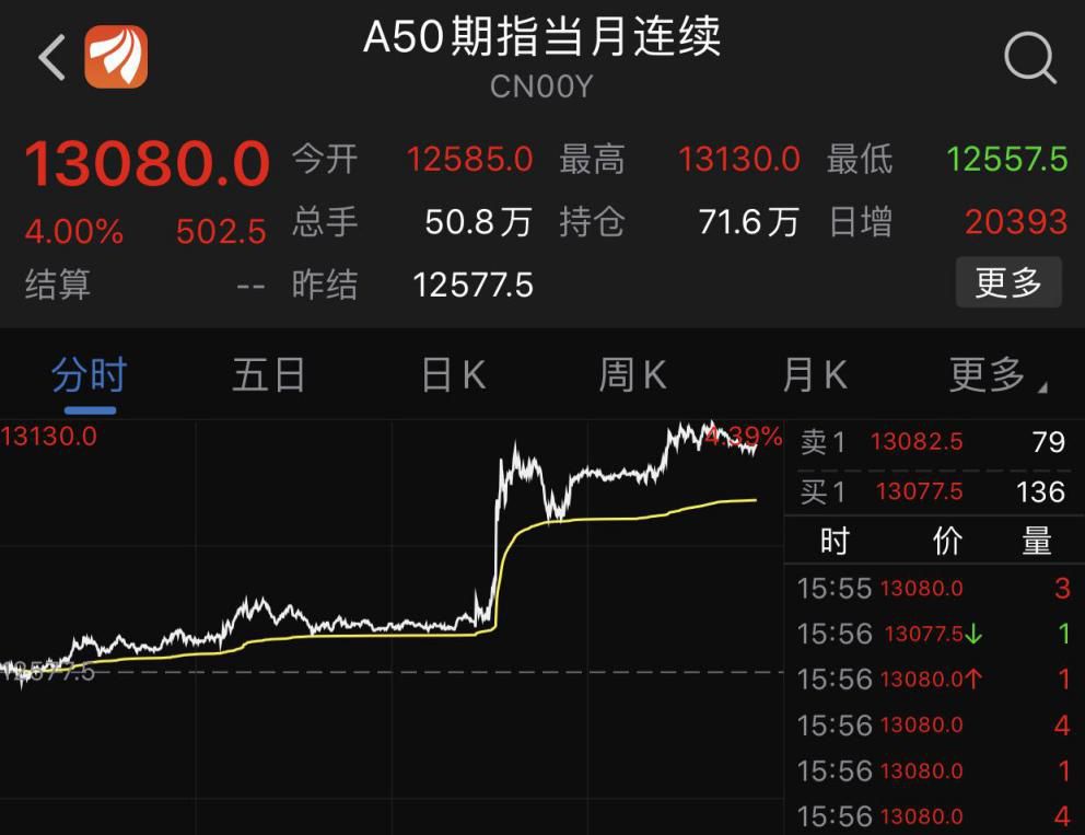 A50更是反弹强劲,截至发稿时间,涨幅达4%,并收复了13000点。
