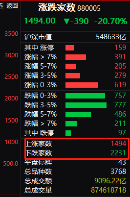 首先,从涨跌个股来看,其实今日盘面呈现的还是涨少跌多的局面。