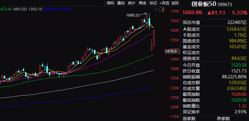 首先从指数来看,A股三大指数全线上涨,其中创业板的相关指数涨幅巨大,接近收复失地。而且成交量显著放大,显示市场流动性紧张的情况在很大程度上已经缓解。