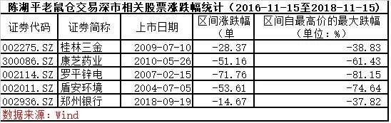 不过,陈湖平在深市的交易就没有那么幸运了,2016年11月15日至2018年11月15日期间,“陈某发”和“傅某城”账户与盛世汇金产品账户趋同交易“罗平锌电”“盾安环境”“康芝药业”“桂林三金”“郑州银行”等5只深圳证券交易所上市的股票,趋同交易成交金额29,632.85万元,趋同交易亏损713.49万元。