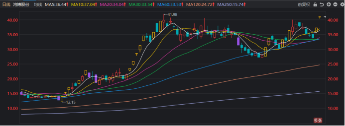 据悉,鸿博股份主营安全印务业务,是中国彩票印刷行业龙头之一,其全资子公司英博数科主要为市场提供算力出租、人工智能领域客户的相关集成产品贸易等业务。因此,鸿博股份也成为时下AI人气龙头股之一。此外,公司旗下英博数科微信公众号近日发文,已完成1000P由英伟达智算服务器组成的AI算力集群部署,在今年9月可落成3000P以上智算中心。受消息提振,鸿博股份今日再度迎来大涨。