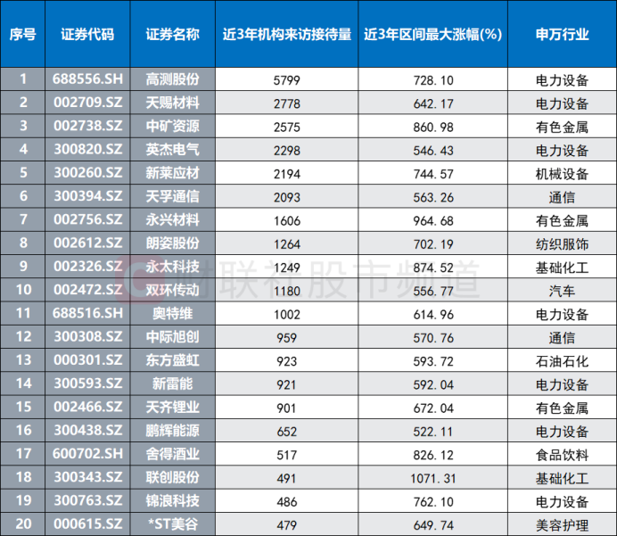 注:近3年中除期间上市的最大涨幅超5倍且机构调研量居前的个股(截至2023年8月15日收盘)