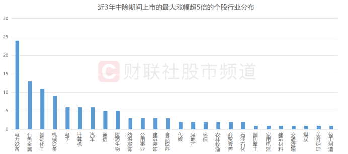注:近3年中除期间上市的最大涨幅超5倍的个股行业分布(截至2023年8月15日收盘)