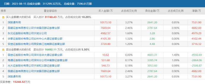 注:鸿博股份8月15日龙虎榜数据