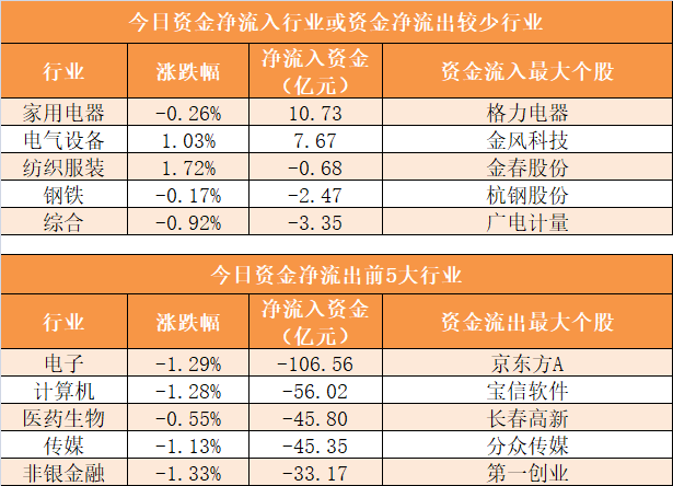 今日沪深两市主力资金开盘净流出105.19亿元,尾盘净流出32.71亿元,两市全天资金净流出378.95亿元。