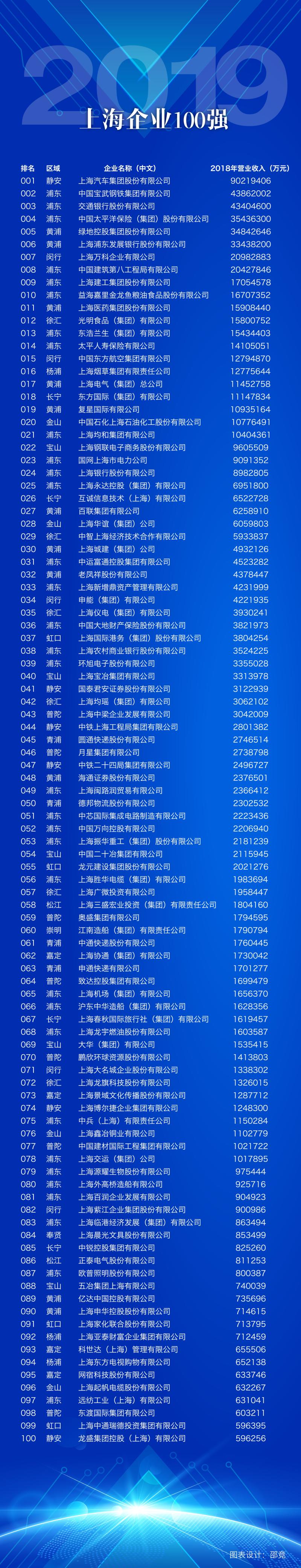 近日发布的2019上海百强企业排行榜显示,上榜企业2018年的营业收入总额达到69081亿元,净利润合计4433.4亿元,企业总营收和净利润均实现两位数增长;百强企业入围门槛提升近10亿元,由上年的49.9亿元提高到59.6亿元。