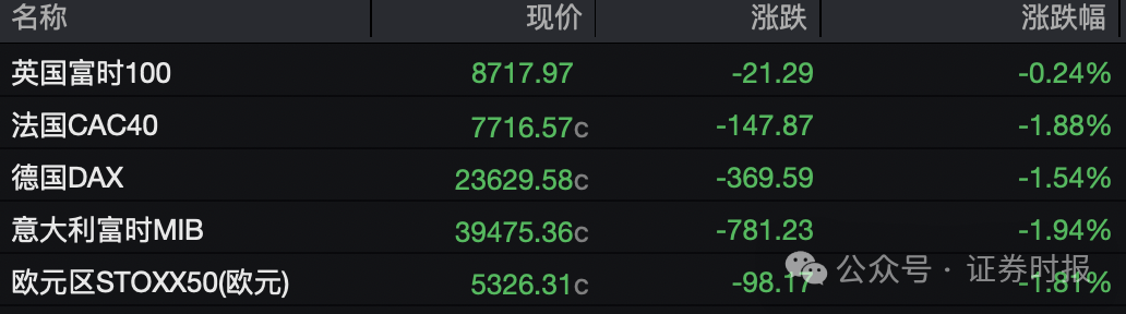 受到特朗普关税言论影响,上周五(5月23日),全球金融市场动荡,欧美股市普跌。截至当天收盘,美股道指跌0.61%,纳指跌1%,标普500指数跌0.67%;欧股方面,英国富时100指数跌0.24%,盘中一度跌近2%,法国CAC40指数、德国DAX指数、意大利富时MIB指数、欧元区斯托克50指数均跌超1%,盘中均跌超3%。