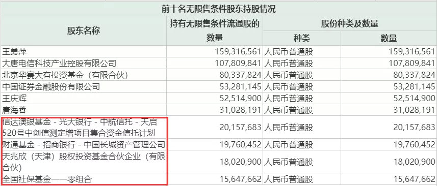 根据*ST信威一季报显示,截至到2019年3月31日,前十大流通股东中,两家基金公司专户均持有2000万股左右,一家股权投资机构也是持有1800万左右。