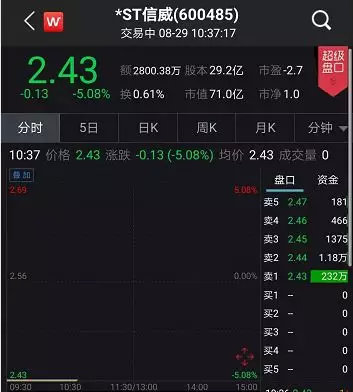 毫无意外,8月29日开盘,*ST信威再度跌停!