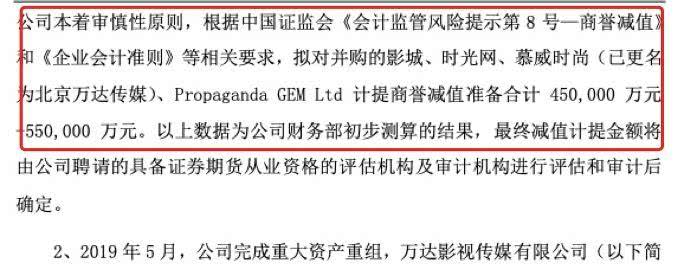 更重要的原因,是由于北京文化的商誉减值。2019年业绩报告期内,北京文化全资子公司世纪伙伴文化传媒(2015年收购价13.5亿)和浙江星河文化(2015年收购价7.5亿)经营业绩下滑,北京文化拟计提相应的商誉减值准备13亿-14.7亿。