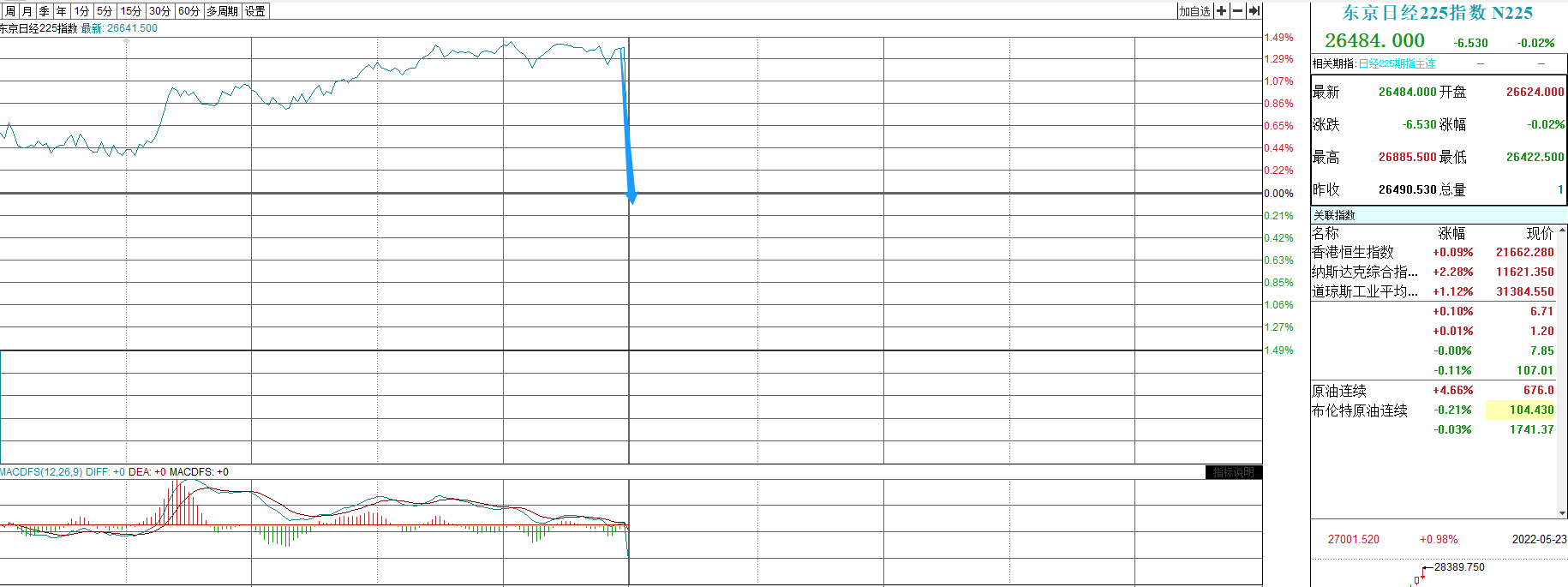 【11:00】日经225指数跳水翻绿,此前一度涨近1.5%。