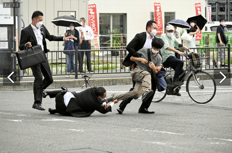【12:47】据FNN消息,射杀前首相安倍的人是前自卫队员。