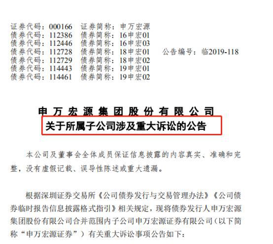 12月18日,申万宏源(000166)集团披露公告称,子公司申万宏源证券(000562)因质押式证券回购纠纷将中信国安(000839)告上法庭,涉案金额高达7.79亿元。后者中信国安集团因流动性危机则两度出现债券违约事件,累计违约金额高达百亿。