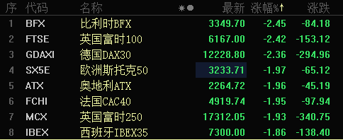 今天开盘之后,欧洲股市低开低走,欧洲斯托克50指数跌幅近2%,英德法主要股市皆大幅杀跌。
