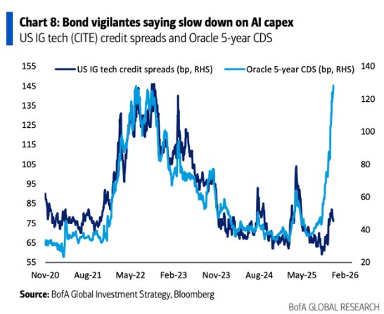 随着甲骨文(ORCL.US)本周三美股盘后将公布财报,且其资本支出计划备受关注,美国银行表示,在支出方面,如今有了新的警长。美银策略师Michael Hartnett 在一份报告中表示,“债券义警”如今已成为“人工智能资本支出的新监管者”,他们正在释放“放缓增长”的信号。
