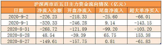 今日沪深两市主力资金开盘净流出218.33亿元,尾盘净流出25.6亿元,两市全天资金净流出226.23亿元。