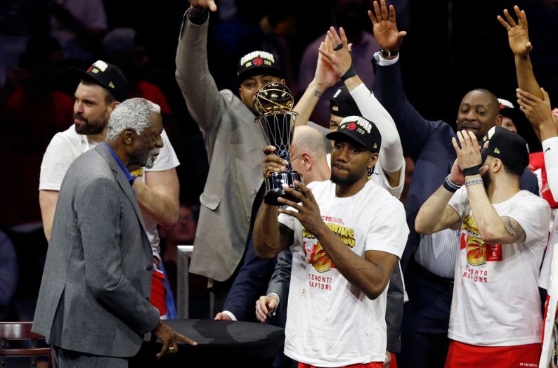 本赛季,猛龙队进行了较大幅度的调整,不仅更换了主教练,还用德罗赞换来莱昂纳德,用瓦兰修纳斯等人换来小加索尔,球队的阵容更加完善和成熟。尤其是新加盟的莱昂纳德,走出一个多赛季的伤病困扰,在多伦多焕发新生,季后赛打出神级表现,多次为球队力挽狂澜。他曾经是NBA历史上最年轻的FMVP,6月14日,他再次捧起了这个奖杯。