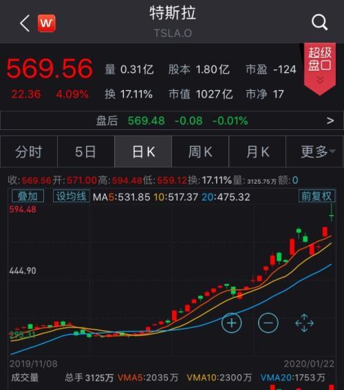 1月22日,美股开盘时特斯拉便高开逾4%,总市值直接突破千亿美元大关,随后持续上行,盘中一度突破590美元,尾盘涨幅有所收窄。截至22日美股收盘,特斯拉涨4.09%,报569.56美元,总市值1027亿美元。