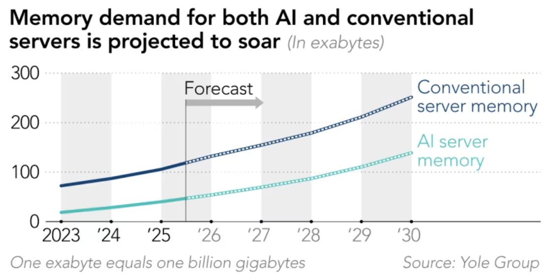 本周一份援引了YOLE GROUP数据的新报告,进一步揭示了受内存短缺影响的领域范围。