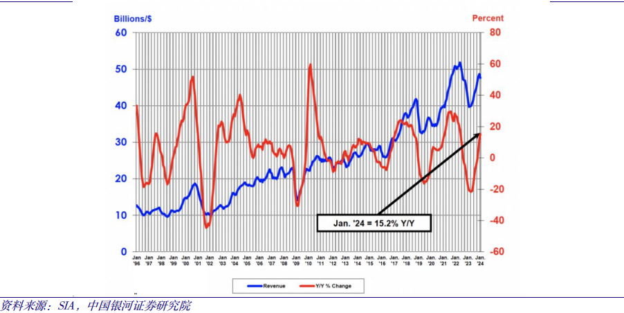 ②全球半导体销售额在24M1 销售增长15.2%,其中中国增长26.6%,为全球增速最快市场。