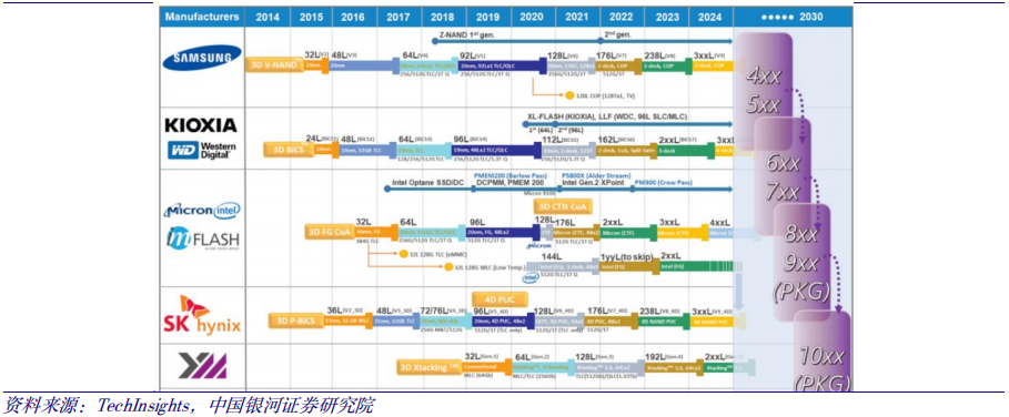 ②NAND 发展路径:高密度存储和 3D 堆叠为主要趋势