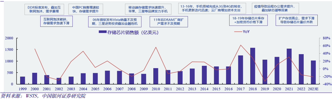 ①存储芯片3-4 年时间约为一个周期,当前处于第五轮周期起点;
