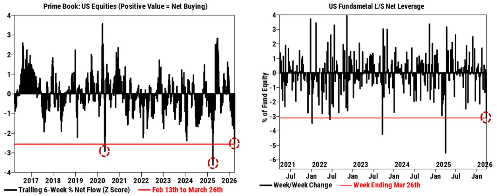 对冲基金持续净卖出:高盛主经纪商周报显示,对冲基金已连续六周净卖出美国股票,近期净抛售规模位列过去十年第三大,主要源于个股的多空双向减仓,同时宏观产品的空头仓位也有所贡献。