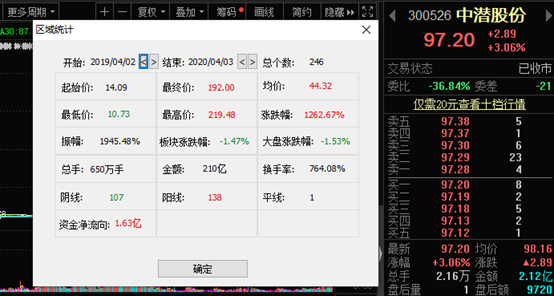 股价表现方面,中潜股份是今年上半年有名的大牛股,年内最高价一度摸高到219.48元,今年最大涨幅一度接近250%,而拉长时间来看,该股在2019年4月3日-2020年4月4日一年间的涨幅达到1262%,妥妥的十倍大牛股。