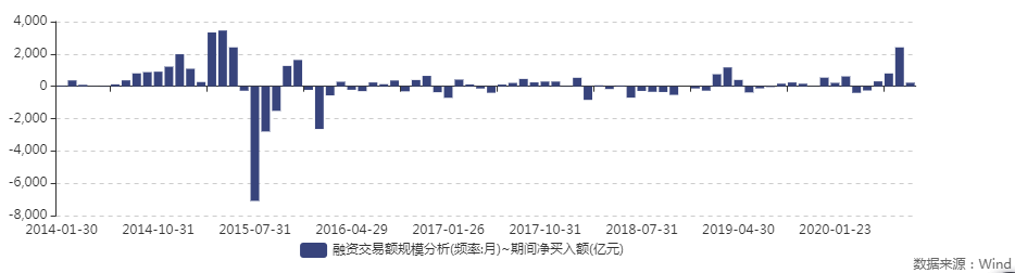 WIND数据显示,在7月份,融资资金单月净买入金额高达2406亿元,接近2015年5月的水平。