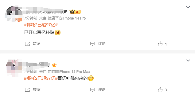此前,“哪吒2 百亿补贴”话题曾冲上微博热搜,多位网友表示,“希望早日开启百亿补贴”“百亿补贴项目冲哇,我将三刷四刷五刷”。今日,该话题再度被热议,多位网友表示“已开启百亿补贴”。
