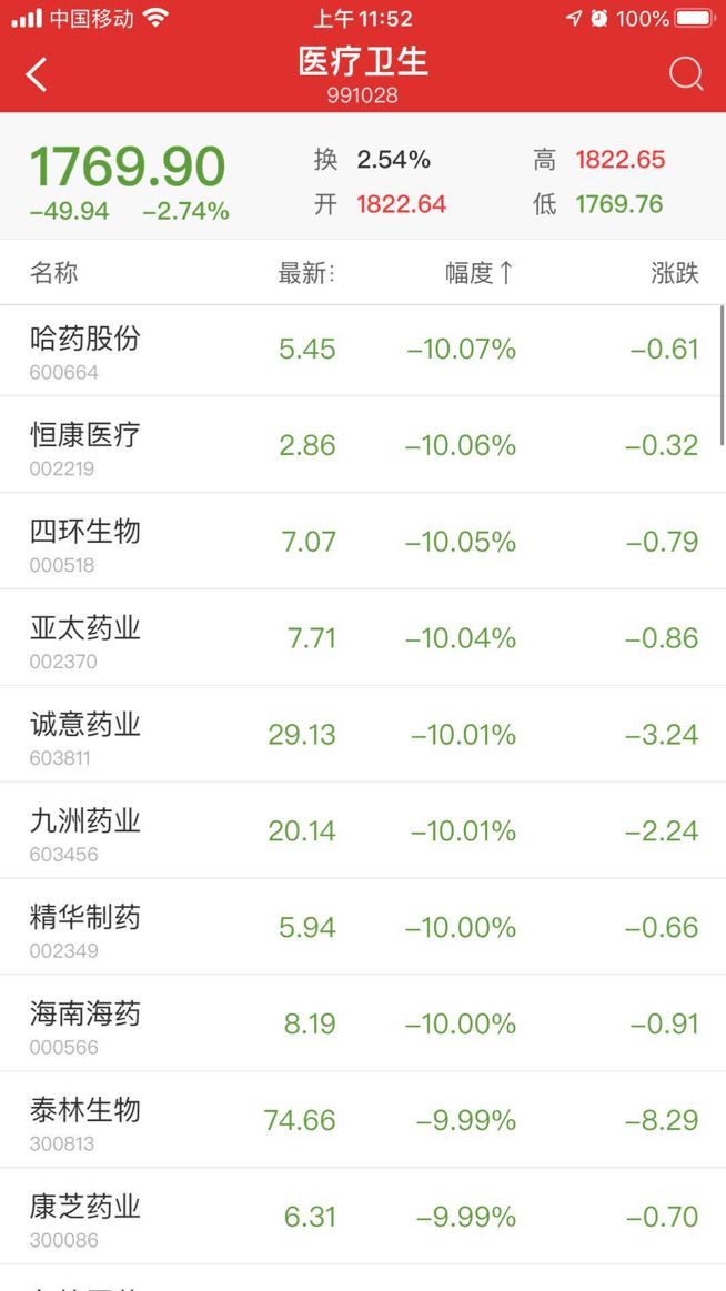 盘面上看,此前表现强势的医药股出现明显回调,医药生物板块午盘跌2.41%,领跌申万一级行业板块。