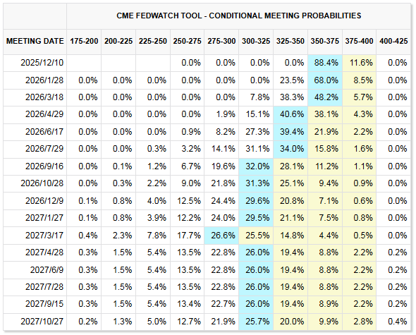 尽管上周五的通胀数据似乎让本周三的美联储降息板上钉钉,但高于目标的通胀读数仍让投资者对2026年的降息预期产生怀疑。市场氛围似乎正偏向偏鹰派——即便哈塞特接任美联储主席,市场也开始怀疑他能否实现特朗普所希望的快速降息。