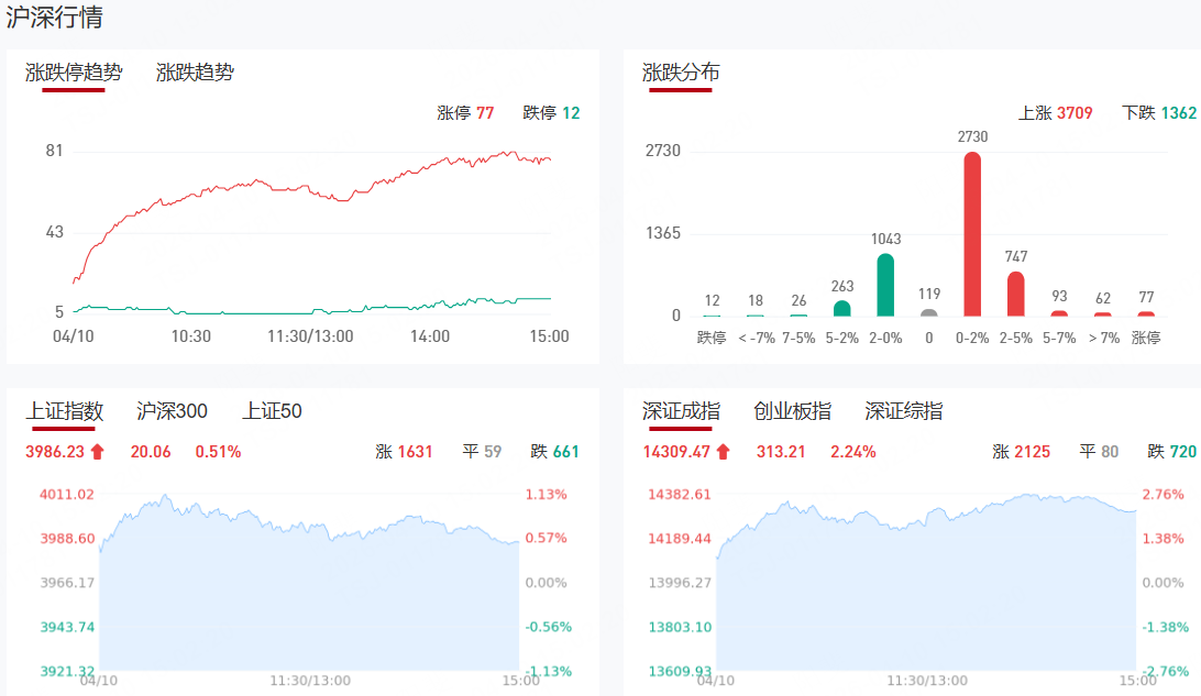 深成指震荡反弹涨超2%,创业板指盘中大涨超4%,突破前期高点,创2021年12月以来新高。黄白线分化明显,权重股走势较强。沪深两市成交额2.32万亿,较上一个交易日放量1888亿。盘面上,市场热点快速轮动,全市场超3900只个股上涨。从板块来看,电池产业链全线走强,石大胜华、国轩高科、上海洗霸、大东南等多股涨停。CPO概念快速走高,源杰科技涨超8%创历史新高,新易盛总市值突破5000亿。燃气轮机概念表现活跃,万泽股份、联德股份3天2板。金融板块盘中异动拉升,南华期货涨停,哈投股份触及涨停。下跌方面,多只高位人气股持续下挫,汇源通信、舒华体育、法尔胜跌停。