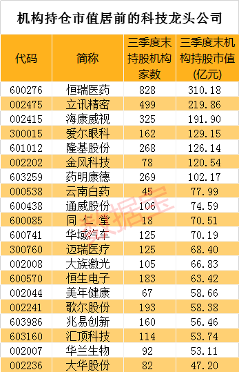 机构扎堆持仓科技龙头市值达到3320亿元