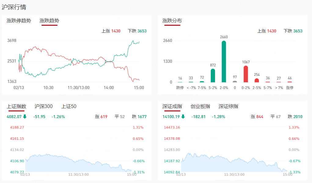板块方面,半导体设备、军工等板块表现活跃,稀土、光伏等板块表现落后。截止收盘,沪指跌1.26%,深成指跌1.28%,创业板指跌1.57%。