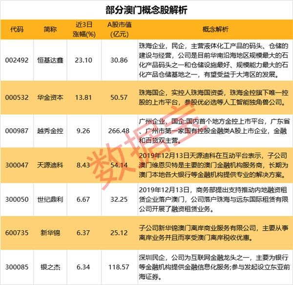 澳门回归20周年进入倒计时,政策大礼包有望落地,相关概念龙头股价收获两连板……