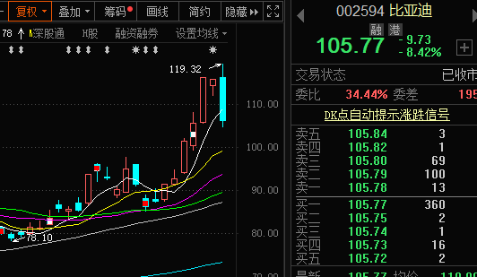 受益于旗下车型“汉”销量持续超预期及其子公司成苹果新品iPad代工方等利好刺激,截至上周五收盘,比亚迪近一个月大涨45%。然而,在股价持续走高后,今日该股高位大跌8.42%,市值一天跌超两百亿。