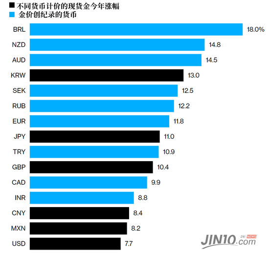 以欧元、澳元和加元计算的金价都已攀升至纪录高位。根据彭博汇编的数据,黄金ETF的持仓创下了有史以来的最长连涨。初步数据显示,单日交易的黄金看涨期权数量飙升至1996年以来的最高纪录。