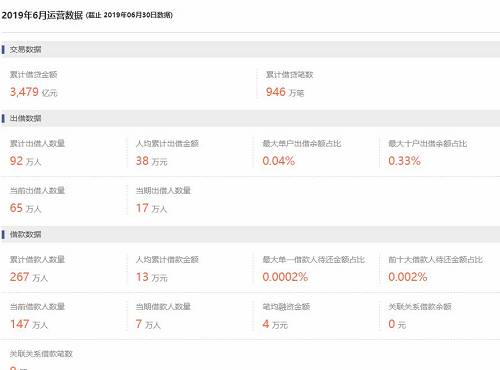 另据陆金服官网信披数据显示,截至2019年6月30日,陆金服平台累计借贷金额为3479亿元,当前出借人数为92万人,当前借款人数达147万人。逾期金额为21.11亿元,金额逾期率为2.15%,项目逾期率3.60%。