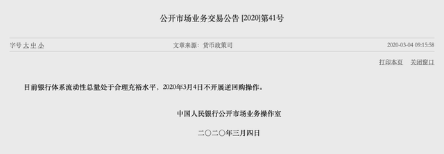 刚刚,人民银行公告称,目前银行体系流动性总量处于合理充裕水平,今日不开展逆回购操作。鉴于今日无逆回购到期,央行实现零投放、零回笼。