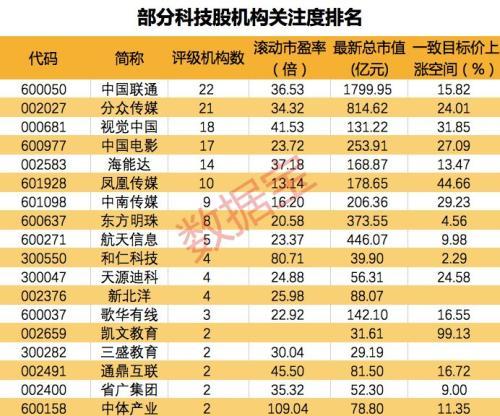 从机构关注度来看,较高的股票有中国联通、分众传媒、视觉中国、中国电影、海能达、凤凰传媒等,均有10家以上机构评级;中南传媒、东方明珠、航天信息等个股,均有5家以上机构评级。
