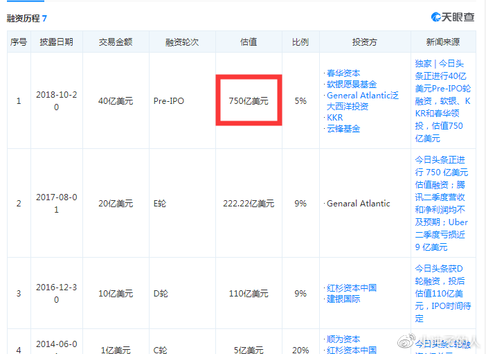 字节跳动目前是全球估值最高的创业公司,估值为750亿美元(约合人民币5200亿元),拥有包括软银、KKR、General Atlantic和红杉资本在内的投资者。