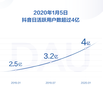 截至2020年1月5日,抖音日活跃用户数已经突破4亿。